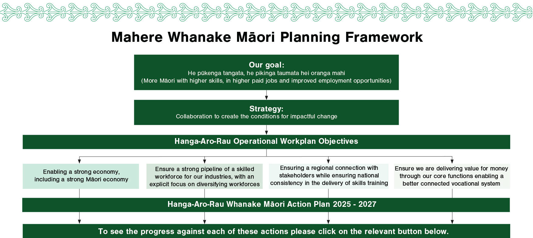 Our online Mahere Whanake Māori outlines the key actions and results from our Whanake Māori (Māori Workforce Development) team. The objective of the Mahere Whanake Māori 2025–2027 is to advocate for and strengthen Māori workforce development by addressing key barriers and unlocking the potential of our growing Māori population. This includes promoting education pathways, enhancing workplace diversity, and encouraging industries to better understand and respond to the aspirations of Māori communities.